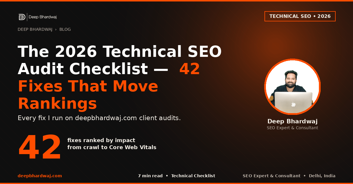 Image Alt Text: Deep Bhardwaj Technical SEO Audit Checklist 2026 — 42 Fixes banner